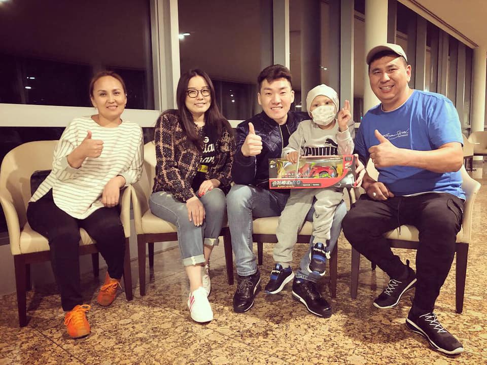 Тэрбээр өөрийн фэйсбүүк хуудаснаа “Сөүл хотод тоглолтоо хийчихээд өнөөдөр “Самсунг” эмнэлэг дээр Э.Маргад-Эрдэнэ дүүг эргэж очлоо. Бие нь өдрөөс өдөрт сайжирч байгаа юм байна. Ээж, аавтай, хүүтэй нь эхнэр бид хэд нэлээн ярьж суулаа. Одоо бас л их удаан эмчлүүлэх шаардлагатай юм байна. Аав, ээж хоёр нь хүүгийнхээ эрүүл мэнд, ирээдүйн амьдралд нь бүх зүйлээ зориулжээ. Бахархаж байна. Тэдний гэр бүлд хамгийн сайн сайхныг хүсье. Солонгос улсад өчигдөр хүүхдийн баяр болсон. Дүүг уйдаж байгаа байх гээд тоглоом авч очлоо. Мөн эмчилгээний зардалд нь хандив өргөлөө” гэжээ.