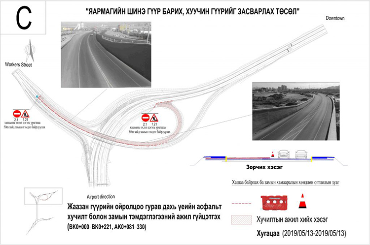 Харин Авто замын өнгөн хучилтын ажлыг 05-р сарын 11-ны өдрөөс эхлүүлж байгаатай холбоотойгоор тус гүүрний чиглэлүүдийг хуваарийн дагуу хэсэгчлэн хаахаар болж байна. Тус ажил 05-р сарын 23-ний өдрийг хүртэл үргэлжлэх бөгөөд замыг хэсэгчлэн хааснаар замын хөдөлгөөнд саад учрахгүй ч ачаалал нэмэгдэх тул тус чиглэлд зорчигчидод хэсэгчлэн хаах хуваарийг танилцуулж байна.