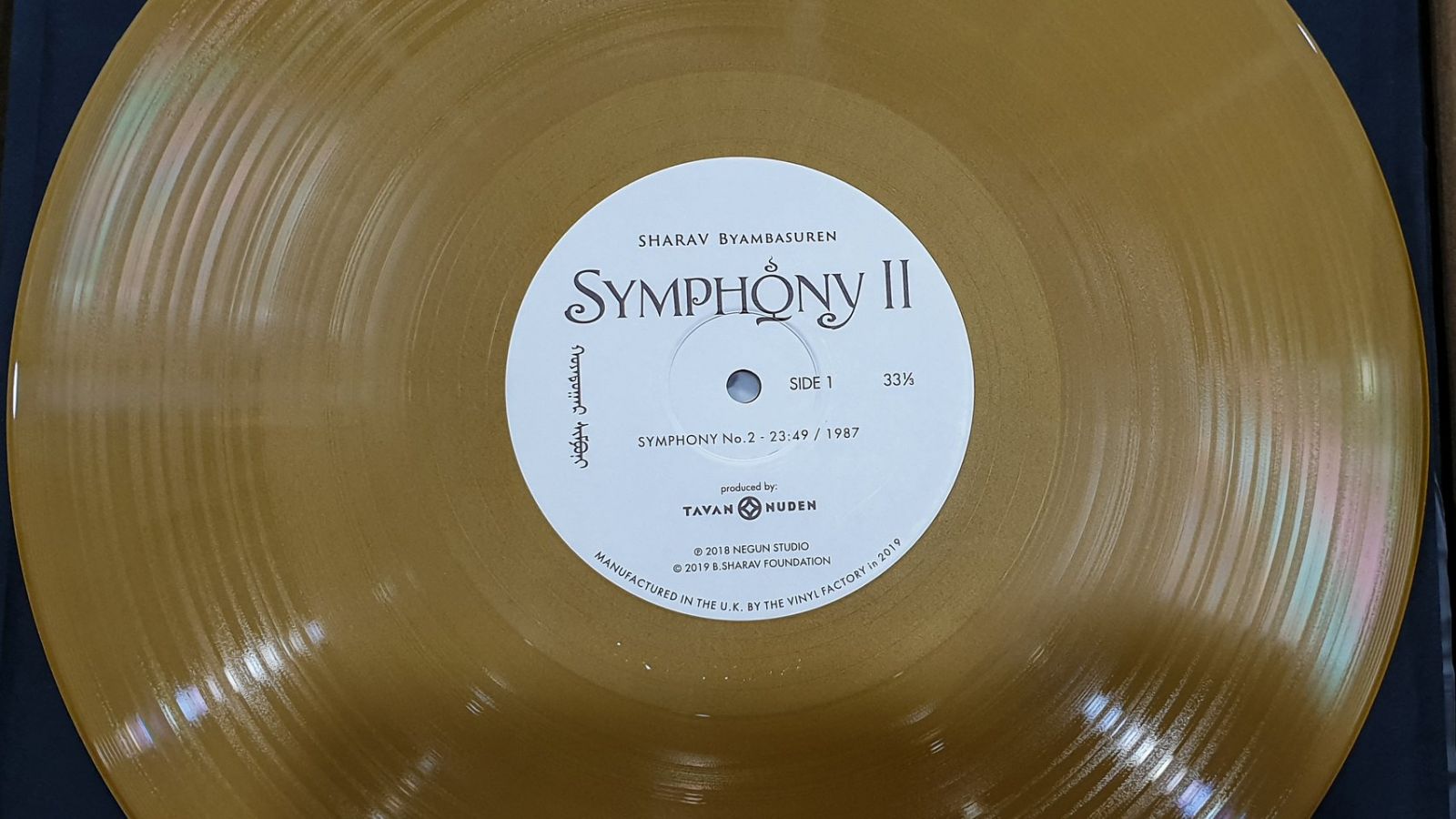 Дэлхийн алдартнуудын пянзыг үйлдвэрлэж ирсэн EMI 1440 төхөөрөмжөөр бүтээсэн Б.Шаравын “ХОЁРДУГААР СИМФОНИ” тэргүүтэй таван бүтээлээс бүрдсэн 300 ширхэг хос алтан пянз Английн Лондон хотоос эх орондоо ирсэн байна.