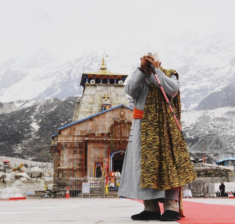 Энэтхэг улсын Ерөнхий сайд Нарендра Моди өнгөрсөн бямба гаригт Гималайн уулан дахь Кедарнатх сүмд зочилж, тэндээс 1.5 км зайд байрлах агуйд бясалгал хийн, залбирал үйлдсэн байна. Тэрбээр Жолли Грант Дехрадуна нисэх онгоцны буудлаас нисдэг тэрэг хөлөглөн, Кедарнатх сүмд очжээ. Нарендра Моди твиттер хуудастаа уулсын зураг болон Уттараханд мужийн нутаг, Гималайн уулан дахь сүмд зочилсон зургуудаа нийтэлсэн байна.