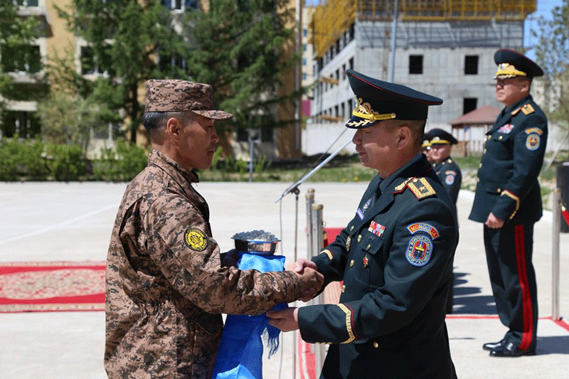 Мөн түүнчлэн цэргийн багийн ажиллагааны өмнөх сургалт, бэлтгэлийг тухайн газар оронд үүсч болзошгүй цагийн байдалд ойртуулан, өдөр шөнө, байгаль, цаг уурын хүндрүүлсэн нөхцөлд хүн нэг бүрт ажиллагааны арга техникийг эзэмшүүлэн, тэдний үүрэг гүйцэтгэх сэтгэлзүйн бэлтгэлжилтийг дээшлүүлж цэргийн багийн жигдрэлтийг ханган зохион байгуулсан болно” гэдгийг дурдаад цэргийн багийн захирагч дэд хурандаа Н.Цэцэнхүүд Монгол Улсын төрийн далбааг гардуулан өглөө.