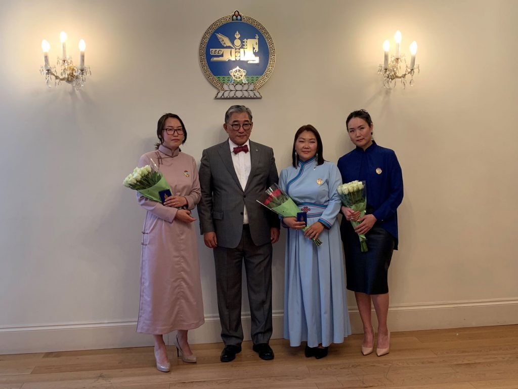 Тэгвэл энэ сарын 1-ны өдөр “Алдарт эх”-ийн II одонгоор шагнагдсан Их Британид оршин суугаа иргэн Цэцгээ овогтой Сарантуяа, Сүхээ овогтой Солонго, Лхагва овогтой Цэцэгсайхан, Сосорбурам овогтой Дуламдорж нарыг Монгол Улсаас ИБУИНВУ-д суугаа Элчин сайд Н.Тулга хүлээн авч уулзана баяр хүргэжээ.