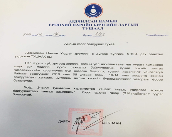 Жирийн иргэдийнхээ нэрийг барьж АН-ынхан улс төрийн тоглолт хийж байгаа нь дээрх албан тоотоос нь тодорхой харагдаж байна. Улс орны, иргэдийн аж амьдралын төлөө хийх ажил их бий. Тэд төрд иргэдийг төлөөлөх гэж сонгогдсон болохоос өөрсдийн эрх ашигт нийцсэн улс төрийн шоу хийх гэж төрийн эрхэнд сандаалаагүй гэдгээ умартсан бололтой.