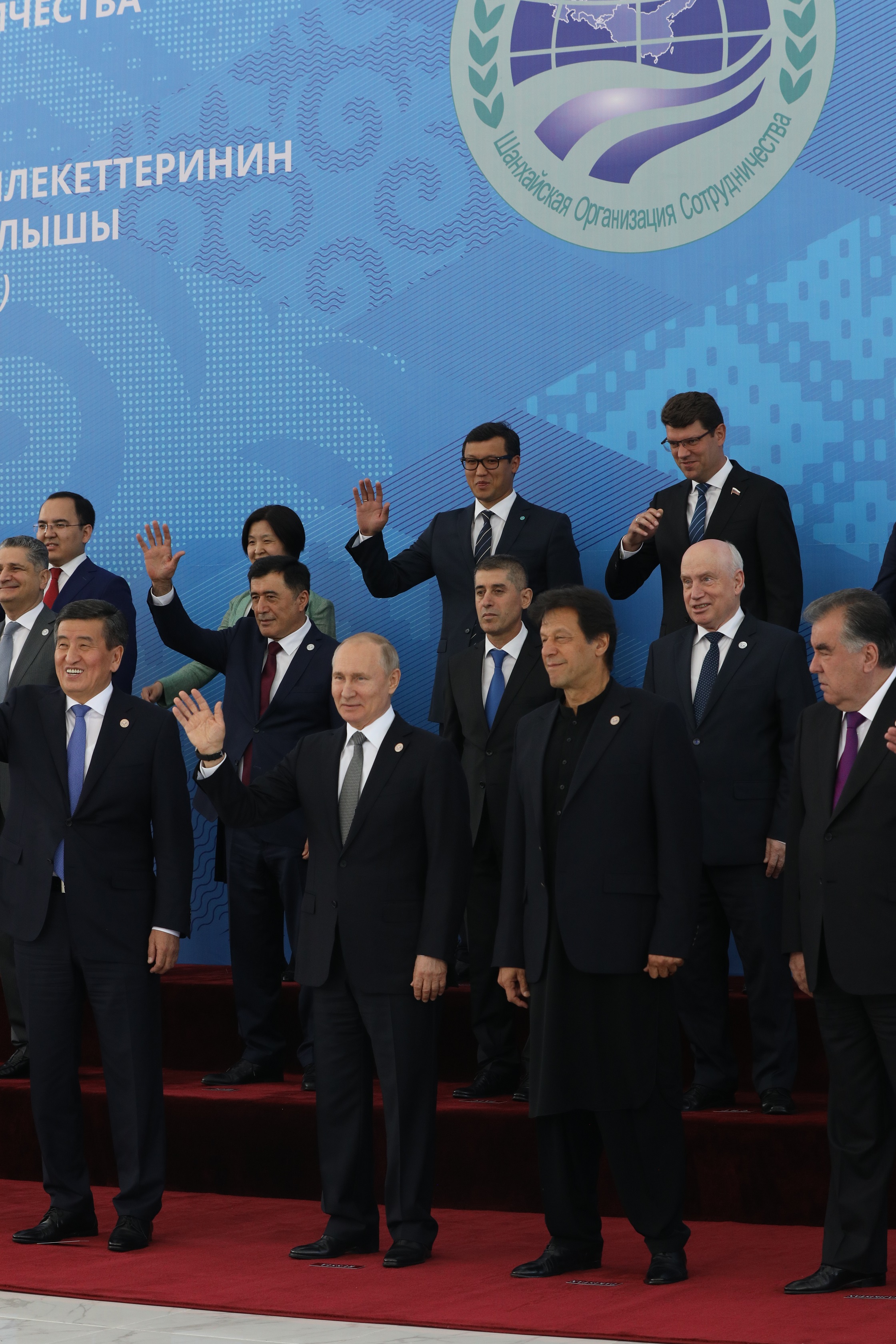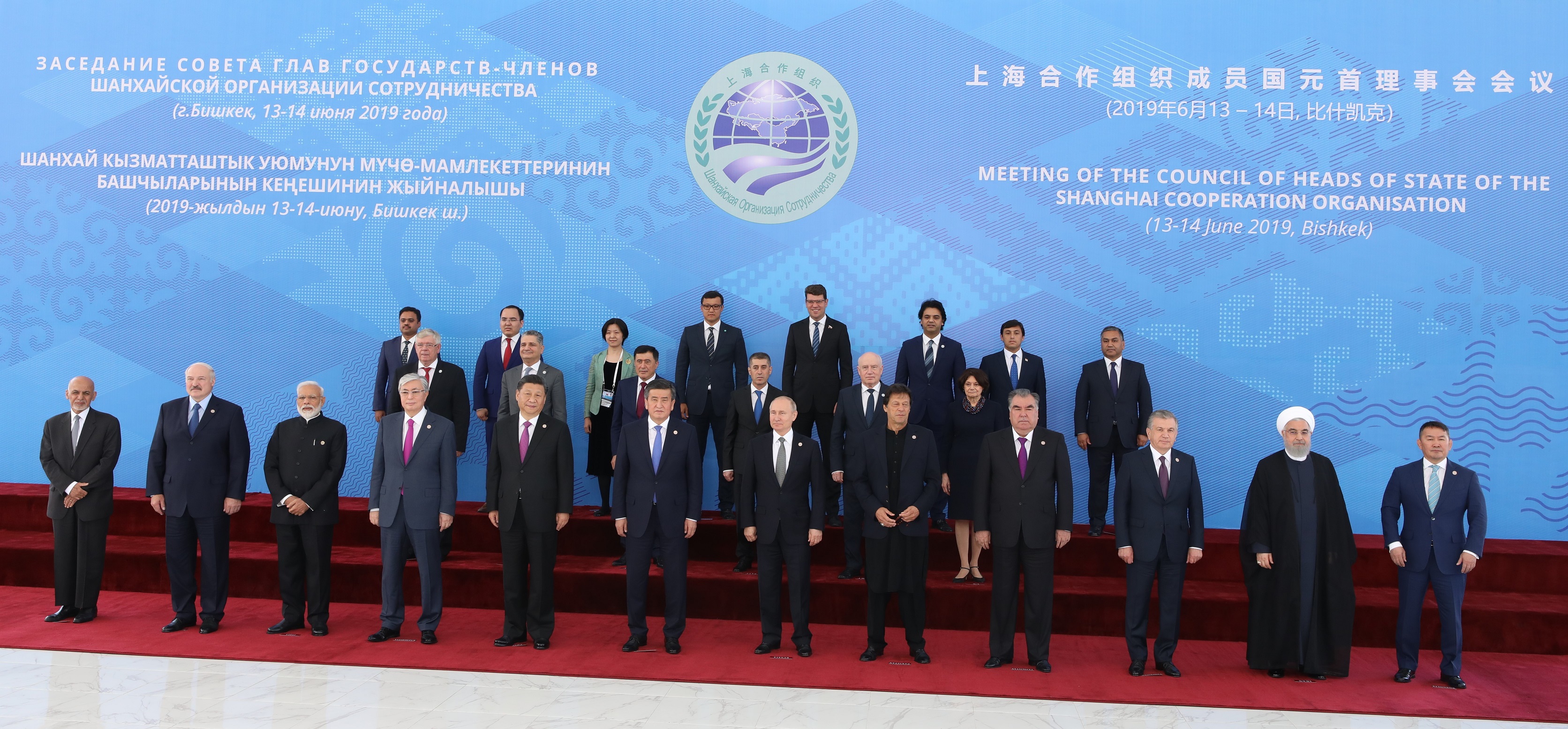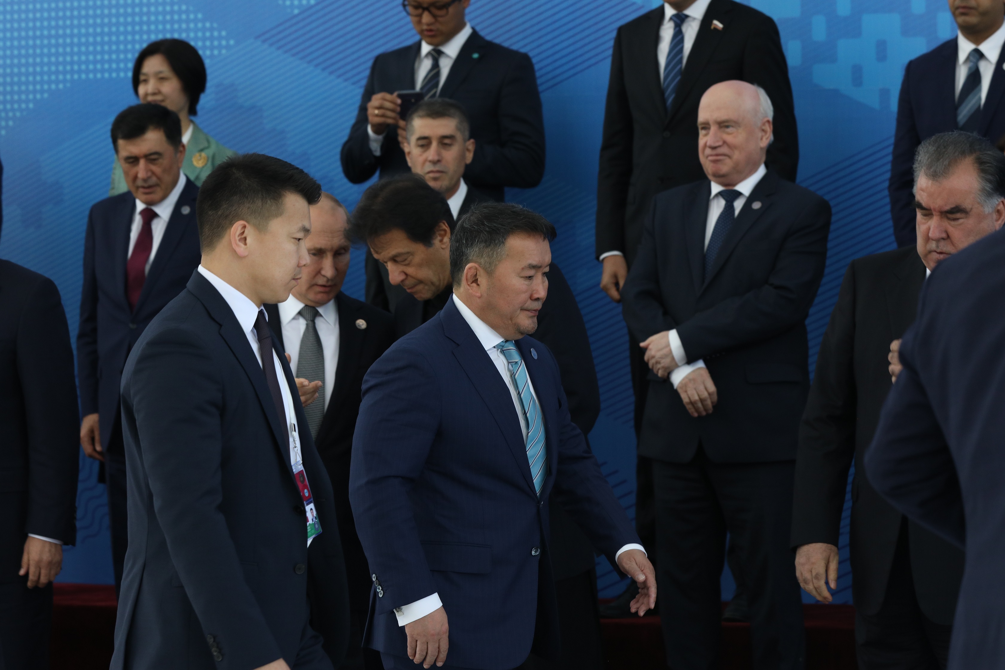 Монгол Улсын Ерөнхийлөгч Х.Баттулга ШХАБ-ын гишүүн, оролцогч орнууд болон олон улсын байгууллагуудын төлөөлөгчдийн тэргүүн нарын өргөтгөсөн хуралдаанд оролцож үг хэлснийхээ дараа төлөөлөгчдийн тэргүүн нарын хамт дурсгалын зураг татуулав.