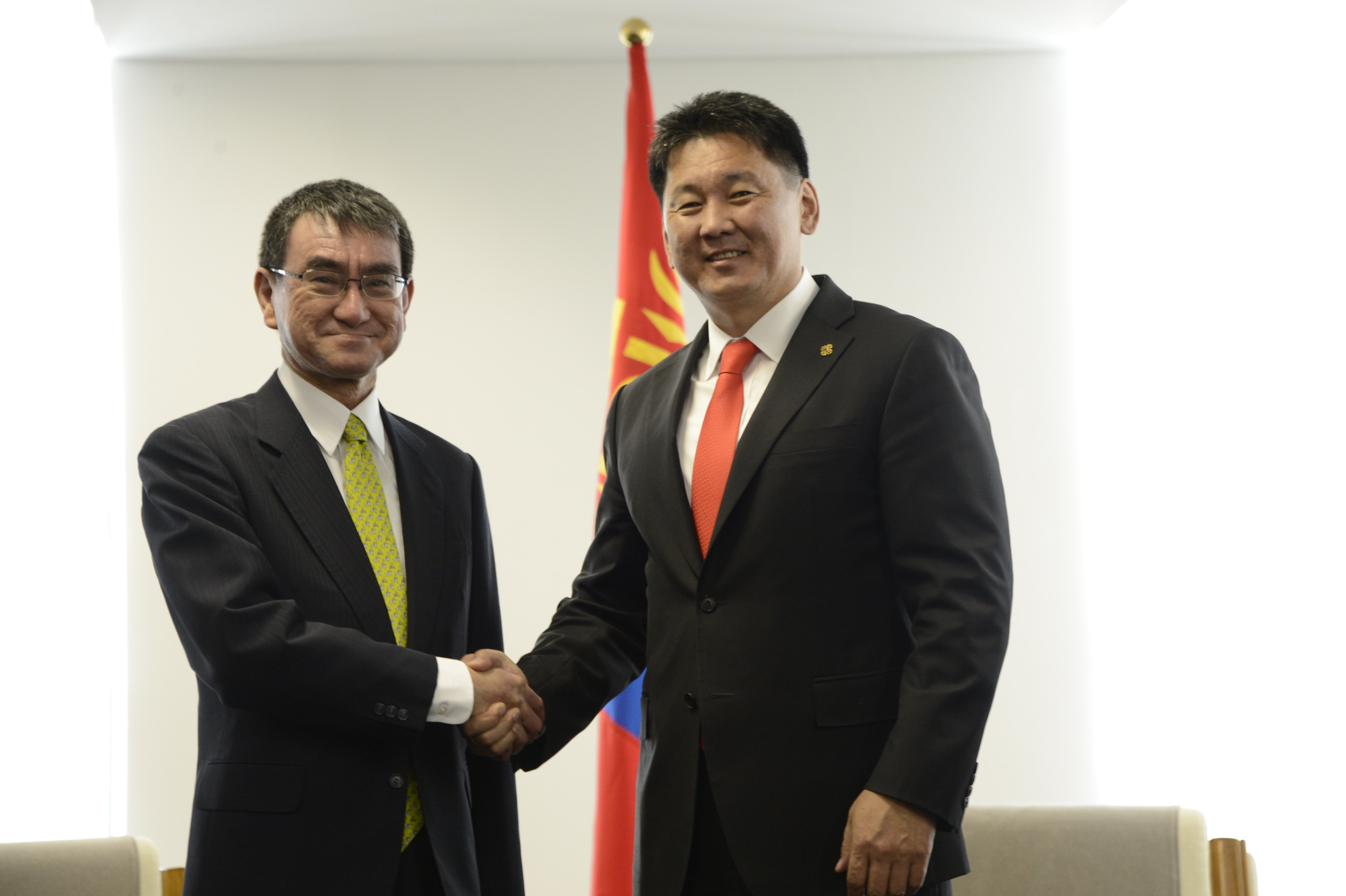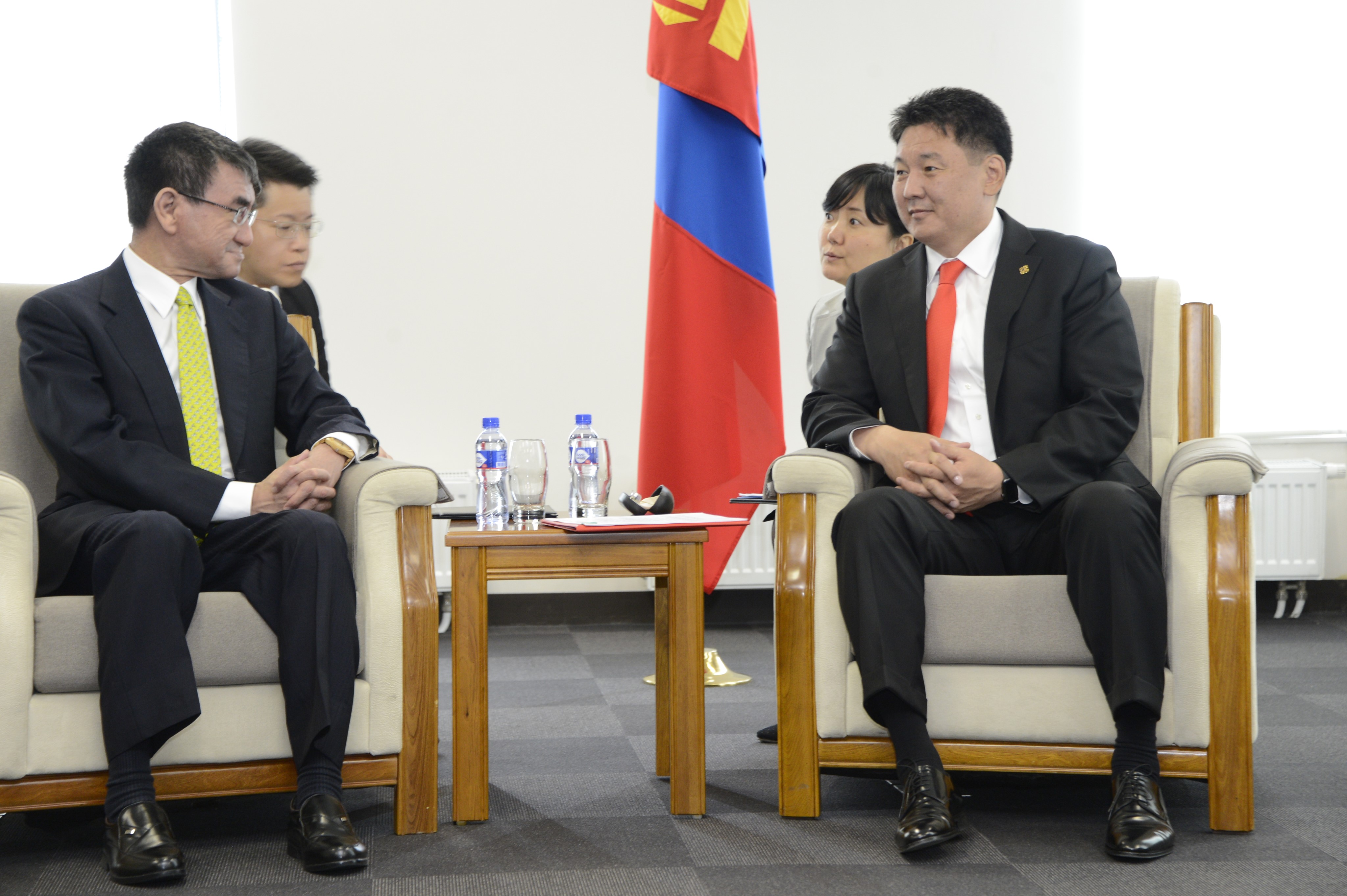 Уулзалтын эхэнд Монгол Улсын Ерөнхий сайд У.Хүрэлсүх Гадаад харилцааны сайд Д.Цогтбаатарын урилгаар манай улсад албан ёсны айлчлал хийж буй Япон Улсын Гадаад хэргийн сайд Коно Тарод Монгол Улсын Засгийн газраас эдийн засаг, хамтын ажиллагааны хүрээнд явуулж буй бодлогын талаар товч танилцуулав. Улмаар хоёр орны харилцаа хамтын ажиллагааны хүрээнд гурван чиглэлд анхаарч ажиллах зорилготой. Эдийн засгийн түншлэлийн хэлэлцээрийн үр өгөөжийг нэмэгдүүлэх, чөлөөт худалдааны хамтын ажиллагааны гэрээ, хэлэлцээрийг дэмжиж ажиллах, Япон Улс, НҮБ хоорондын ойлголцолд идэвхитэй байр сууринаас оролцоход анхаарч ажиллах болно. Монгол Улсын нийгэм эдийн засгийн шилжилтийн үеийн жилүүдэд Японы ард түмний үзүүлж байсан тусламж дэмжлэг, халуун сэтгэлийг үргэлж санан дурсаж, талархаж байдаг гэсэн юм.