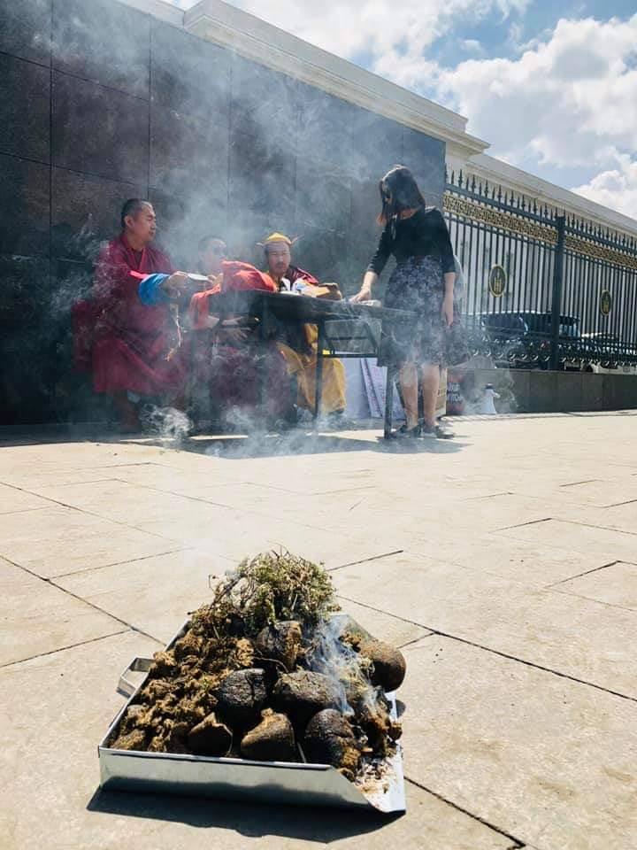 “ХЗДХ-ийн сайд Ц.Нямдоржийг огцруулах ард түмний хөдөлгөөн”-ий Ерөнхий зохицуулагч Т. Энхсайхан “Бид цөхрөнгөө барж байна. Арга ядсандаа Төрийн ордны гадна хонож, арц хүж уугиулан сан тавиуллаа. Бурханы олон шавь, лам хуваргуудыг урьж залан МУ-ын төрийг төвшитгөх, ард түмнээ хөгжин цэцэглүүлэх, Төрийн ордон дотор байгаа бузар булай, муу муухай бүхнийг арилгах номыг хуруулж, сан тавиулж, сэржим өргүүлж байна.
