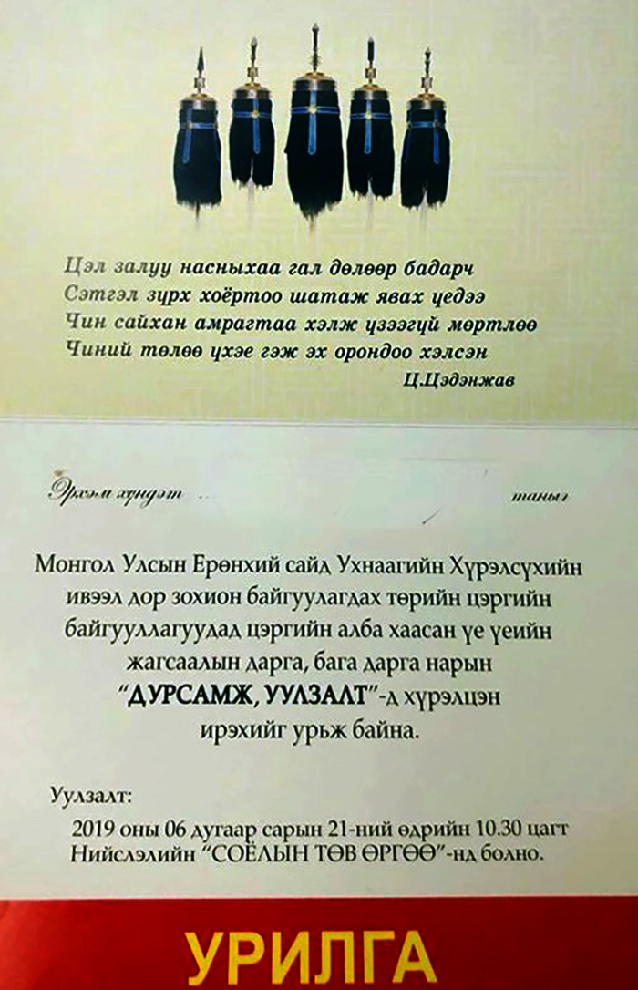 Ерөнхий сайд У.Хүрэлсүхийн ивээл дор зохион байгуулагдах төрийн цэргийн байгууллагуудад алба хаасан үе үеийн жагсаалын дарга, бага дарга нарын “Дурсамж уулзалт” энэ сарын 21-ний өдөр болно. Уг арга хэмжээний талаар нийслэлийн Цэргийн штабаас өнөөдөр мэдээлэл хийлээ. Анх удаагаа болох гэж буй уг арга хэмжээг Батлан хамгаалах яам, Зэвсэгт хүчний жанжин штаб, Хил хамгаалах ерөнхий газар, Онцгой байдлын ерөнхий газар, Цагдаагийн ерөнхий газар, Нийслэлийн ИТХ болон нийслэлийн ЗДТГ-ын Цэргийн штаб, “Монгол цэргийн нэгдсэн холбоо” хамтран зохион байгуулах юм.