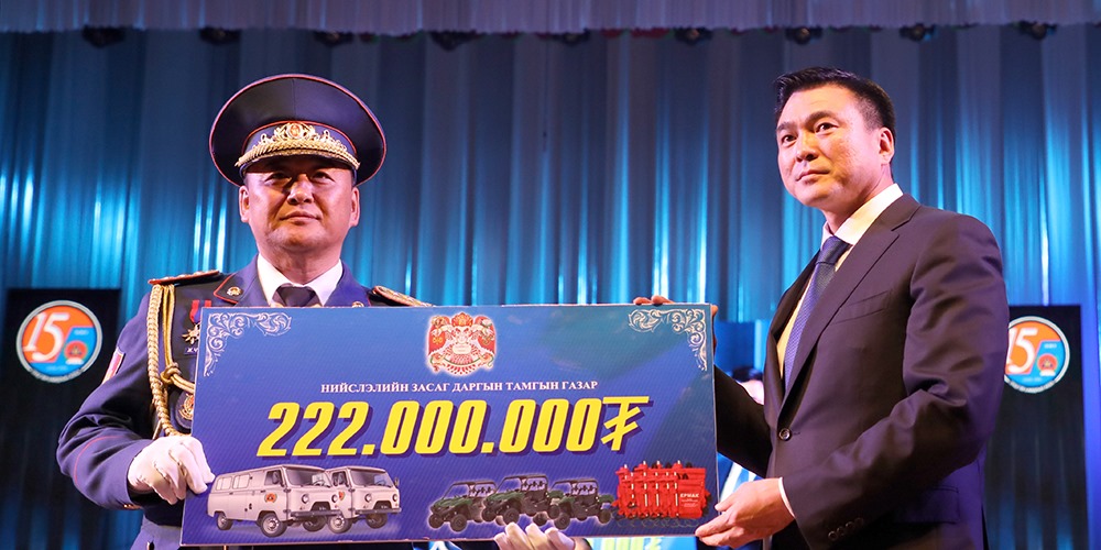 Зочид, төлөөлөгчид хүндэтгэлийн хуралд үг хэлж, баярын мэндчилгээ дэвшүүлсний дараа нийслэлийн Засаг дарга бөгөөд Улаанбаатар хотын Захирагч С.Амарсайхан нийслэлийн Онцгой байдлын газарт шаардлагатай байгаа тоног төхөөрөмж, техник хэрэгслийг олгохоор болсноо хэлж, нийслэлийн Онцгой байдлын газрын дарга, хурандаа Ж.Чүлтэмсүрэнд эрхийн бичгийг гардуулсан юм.