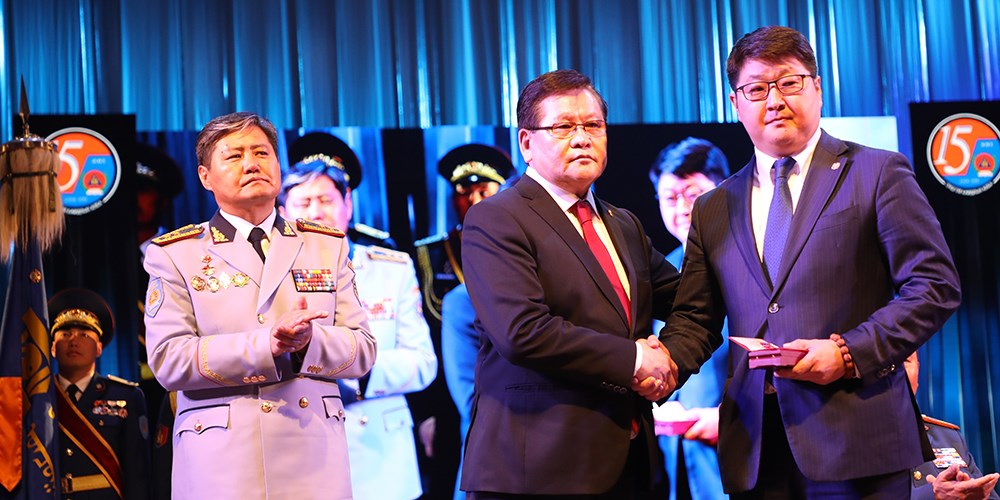 Хурлын эхэнд Монгол Улсын Ерөнхийлөгч зарлиг гаргаж, ОБЕГ-ыг 15 жилийнх нь ойг тохиолдуулан үе үеийн албан хаагч, аврагчдын байгуулсан алдар гавьяа, бахархам үйл хэргийг үнэлж, Монгол Улсын төр, ард түмний нэрийн өмнөөс “Цэргийн гавьяаны улаан тугийн одон”-оор шагнасныг Ерөнхий сайд У.Хүрэлсүх гардуулав.