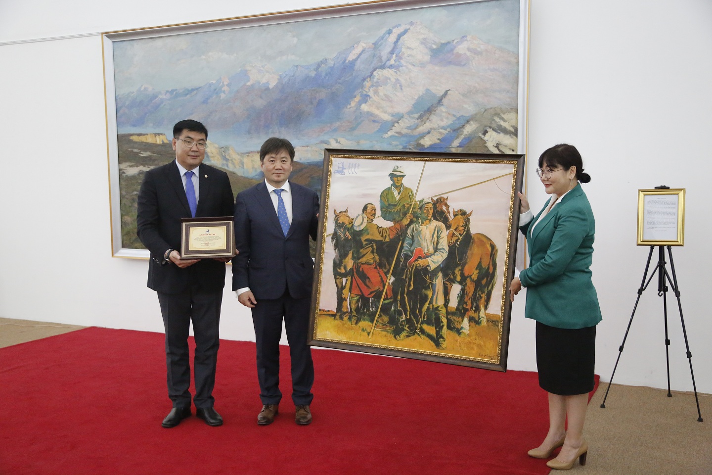 Монголын тайз, дэлгэцийн анхны зураач Л.Гаваа уг бүтээлээ 1958 онд зурсан бөгөөд улсын сан хөмрөгт хадгалагдан хагас зууны турш үзэгчдийн сэтгэлийг хөдөлгөж ирсэн ч өнөөдрийг хүрэхдээ элэгдэж муудан, будаг болон хүрээ жааз нь хатаж хагарсан байсныг банкны салбарын ажилтнуудын хандив тусламжтайгаар ийнхүү засварлан өнгө зүсийг нь нэмсэн төдийгүй Монголын уран зургийн галерейн үзвэрийн дөрвөн танхимыг шинэчлэн тохижуулжээ.