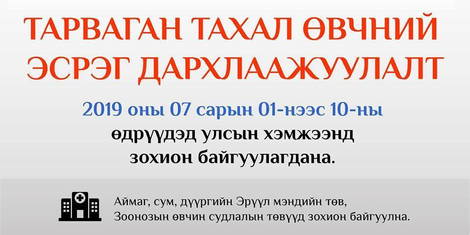 Тарваган тахал өвчний эсрэг дархлаажуулалтын ажил үргэлжилж байна