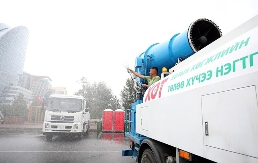 Төв цэнгэлдэх хүрээлэн болон Хүй долоон худагт агаар чийгшүүлж авто зам угаадаг машин ажиллаж байна. Тодруулбал, уг машин нь найман тонны усны багтаамжтай, агаарт усан тоосонцор үүсгэж чийгшүүлэх, даралттай усаар замын хашлага шүршиж угаах, хойд хэсэгтээ авто замыг чийгшүүлэх зэрэг олон үйлдэлтэй аж.