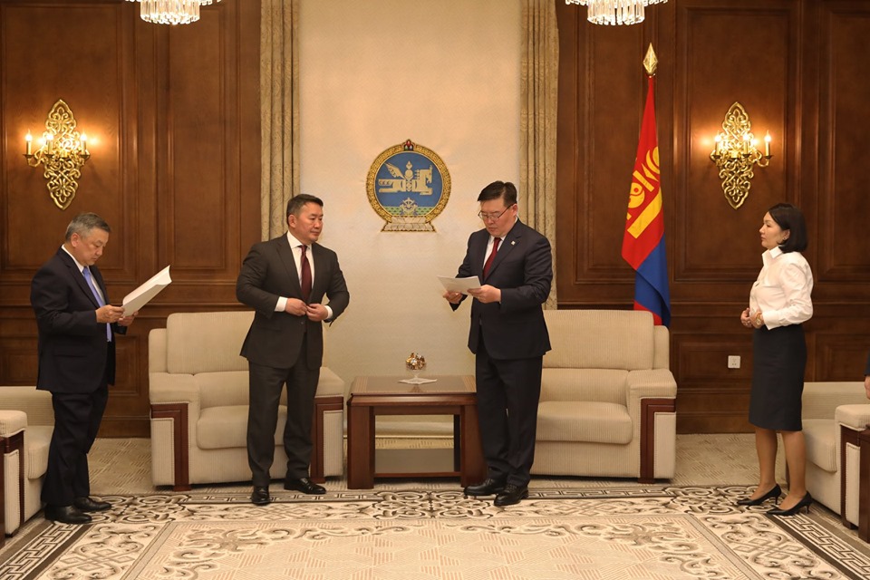 Монгол Улсын Ерөнхийлөгч Х.Баттулга өнөөдөр УИХ-ын дарга Г.Занданшатарт Монгол Улсын Үндсэн хуульд оруулах нэмэлт, өөрчлөлтийн төслийг өргөн барив.