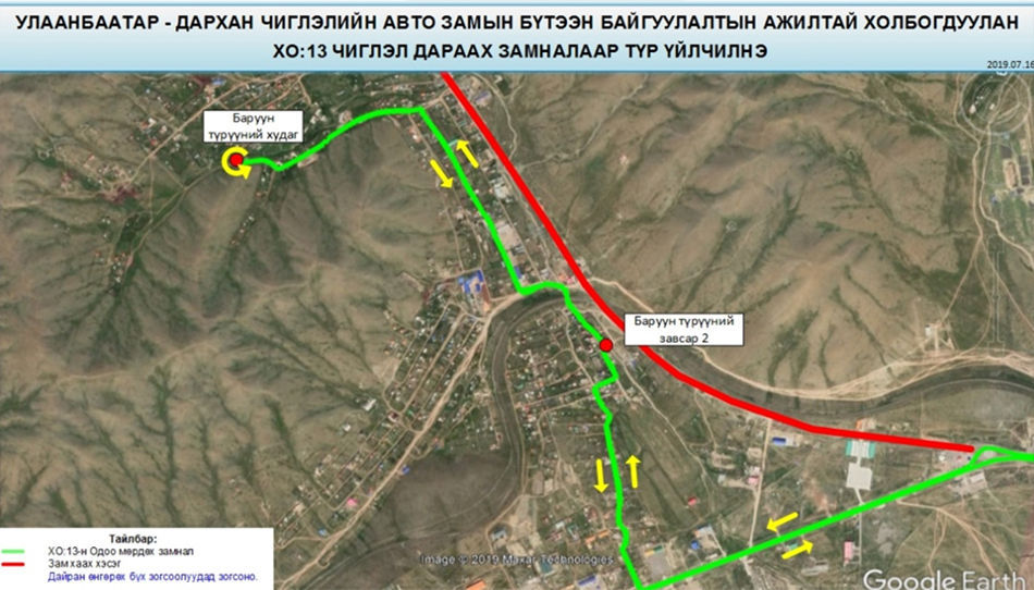 Мөн тухайн авто замаар дайран өнгөрдөг нийтийн тээврийн үйлчилгээний ХО:13 “Баруун түрүү – 10 хороолол” чиглэлийн замд дараах өөрчлөлт оржээ.