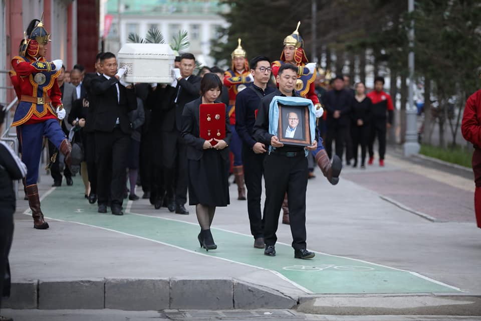 Улсын Дуурь бүжгийн эрдмийн театрт болсон салах ёслолд төр, нийгмийн зүтгэлтнүүд, урлаг соёлын нөхөд нь хүрэлцэн иржээ. Мөн УИХ, Засгийн газрын гишүүд, нэрт хөгжмийн зохиолчтой салах ёс хийж, гэр бүл, төрөл төрөгсдөд нь гүн эмгэнэл илэрхийллээ.