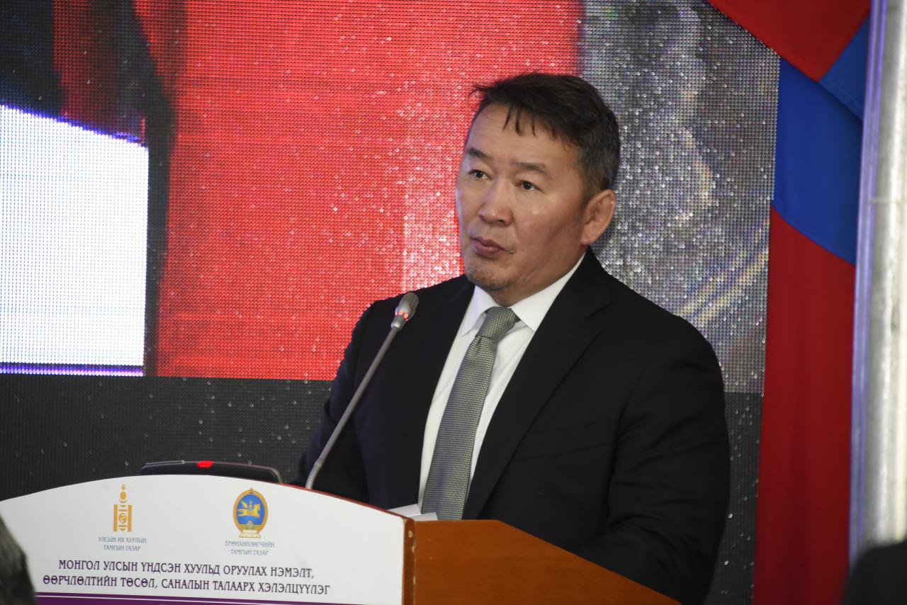 Монгол Улсын Үндсэн хуульд оруулах нэмэлт, өөрчлөлтийн төслийн талаарх “Нутгийн удирдлагын тогтолцоог боловсронгуй нь” сэдэвт хэлэлцүүлгийг нээж Монгол Улсын Ерөнхийлөгч Халтмаагийн Баттулга үг хэллээ.