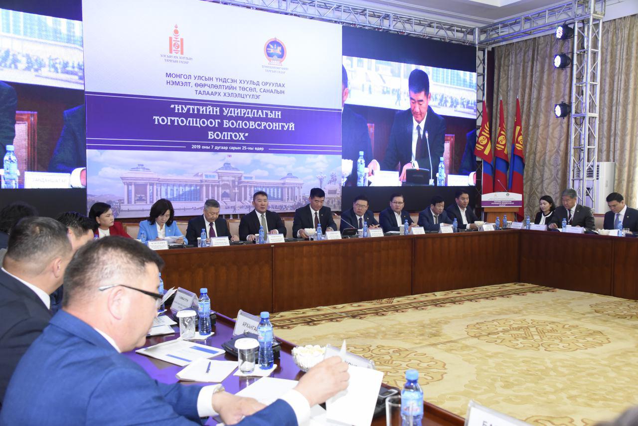 Улсын Их Хурлын 72 дугаар тогтоолоор байгуулагдсан Ажлын хэсгээс Монгол Улсын Үндсэн хуульд оруулах нэмэлт, өөрчлөлтийн төслийн талаар 2019 оны 7 дугаар сарын 22-26-ны өдрүүдэд Төрийн ордонд таван удаагийн хэлэлцүүлэг зохион байгуулахаар тогтож, эхний гурван өдрийн хэлэлцүүлгийг Үндсэн хуульд оруулах нэмэлт, өөрчлөлтийн төслийн Гүйцэтгэх эрх мэдлийн хариуцлагыг нэмэгдүүлж, тогтвортой байдлыг хангах, Парламентын ардчиллыг төлөвшүүлж, ард түмний засаглах эрхийг хангах, Шүүхийн эрх мэдлийг дээшлүүлж, хараат бус байдлыг хангахтай холбоотой асуудлуудаар тус тус зохион байгуулсан.