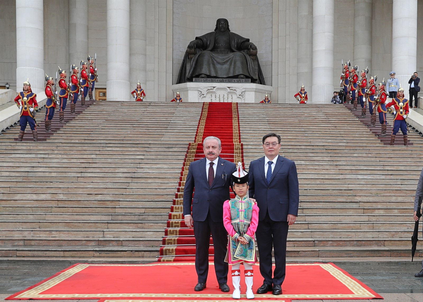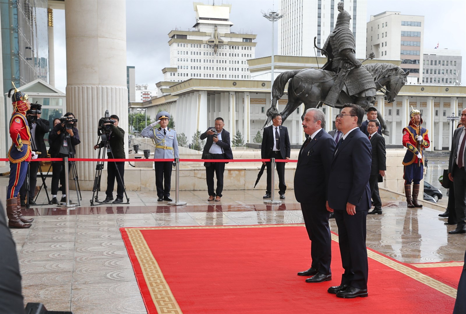 Улсын Их Хурлын дарга Гомбожавын Занданшатар Монгол Улсад албан ёсны айлчлал хийж буй Бүгд Найрамдах Турк Улсын Үндэсний Их Хурлын дарга, ноён Мустафа Шентопыг өнөөдөр (2019.07.29) их жанжин Д.Сүхбаатарын талбайд угтан авч, мэндчиллээ.
