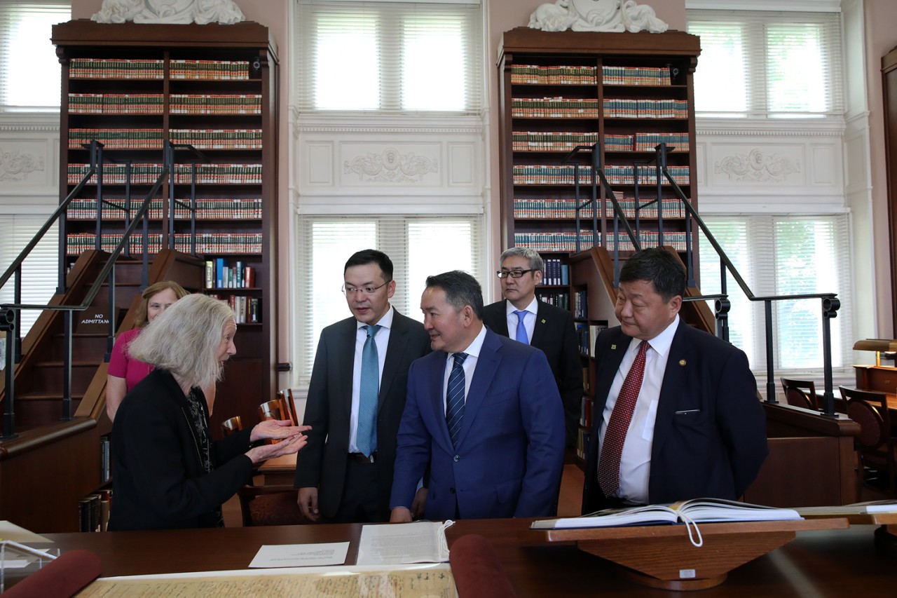Дараа нь Монгол Улсын Ерөнхийлөгч Х.Баттулга Конгрессын номын сангийн Азийн номын танхимд зочилж, сан хөмрөгийн зарим хэсгийг үзэж, сонирхлоо.