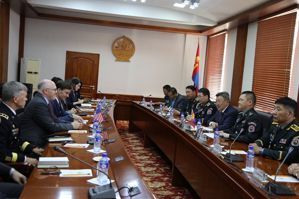 УИХ, Засгийн газрын гишүүн, Батлан хамгаалахын сайд Н.Энхболдтой АНУ-ын Батлан хамгаалахын сайд Др.Марк Т.Эспэр уулзлаа. Түүнийг Монгол Улсын БХЯ-нд хүрэлцэн ирэхэд хүндэт харуул, ЗХЖШ-ын ҮЖҮНХ-ийн бие бүрэлдэхүүн жагсан угтаж, хүндэтгэл үзүүлж, хоёр улсын Төрийн дууллыг эгшиглүүлсэн юм. Дараа нь ноён Др.Марк Т.Эспэр тэргүүтэй АНУ-ын Батлан хамгаалах салбарын зочид Монгол Улсын Батлан хамгаалах, Зэвсэгт хүчний удирдлагуудтай уулзаж, хоёр орны Батлан хамгаалах салбарын харилцаа, хамтын ажиллагаа, цаашдын хөгжлийн чиг хандлагын талаар санал солилцлоо.