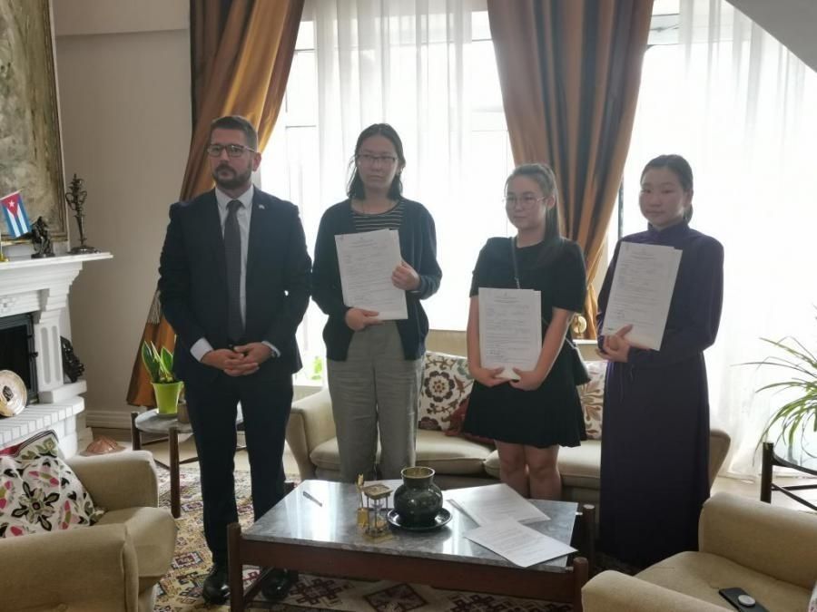 Куба Улсад суралцах тэтгэлэгт сонгон шалгарсан гурван оюутан гэр бүлийн гишүүдийн хамт хүрэлцэн ирж, тус улсад үнэгүй суралцах эрхийн бичгээ гардан авсан юм.