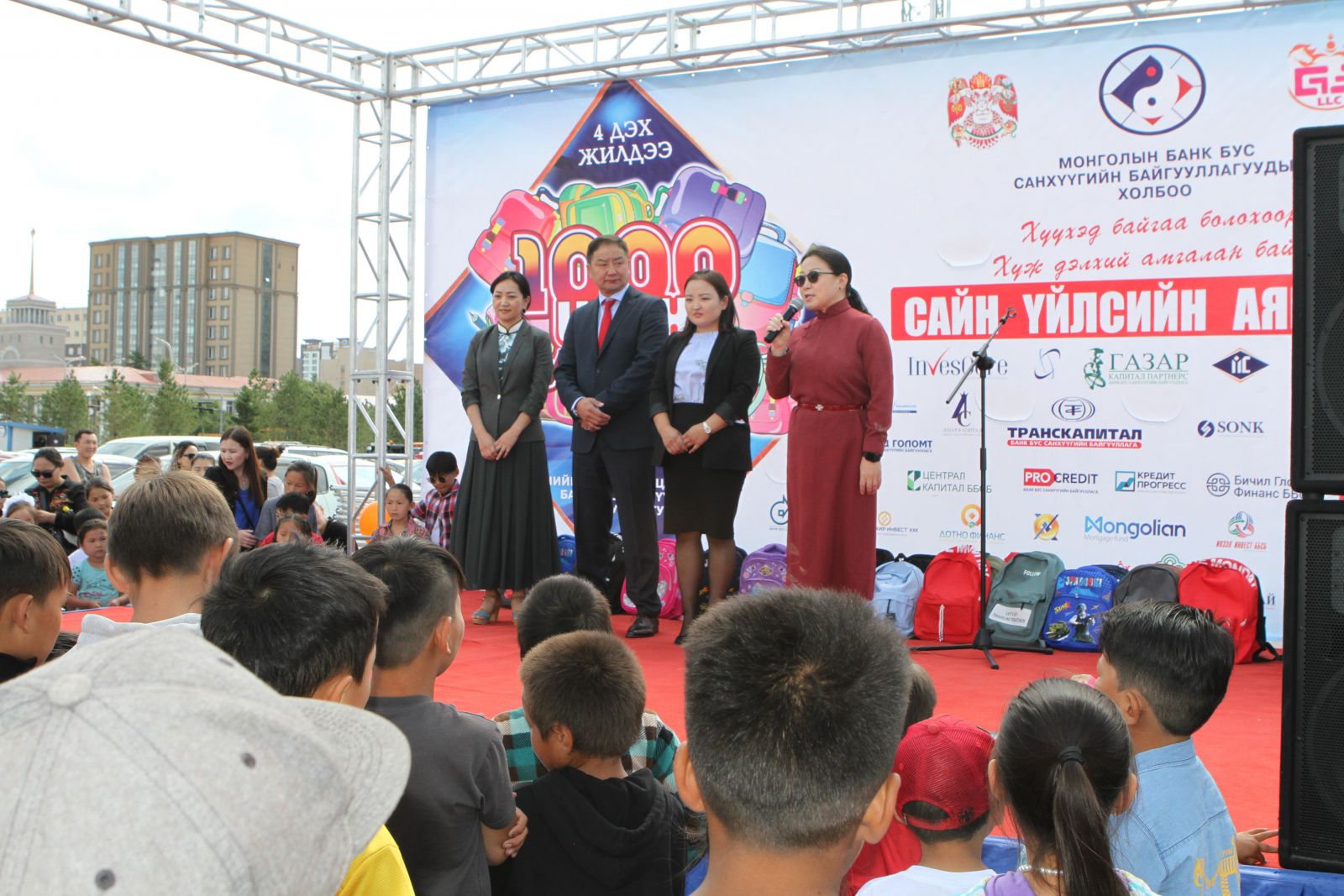 Монголын банк бус санхүүгийн байгууллагууд зорилтот бүлгийн 1000 өрхийн хүүхдүүдэд цүнх, хичээлийн хэрэглэл бэлэглэсэн уламжлалт арга хэмжээг Санхүүгийн зохицуулах хорооны дарга, доктор С.Даваасүрэн нээж, эх орны ирээдүй болсон нийт хүүхэд багачуудад сурлагын амжилт хүсэж, нийгмийн хариуцлагатай аж ахуйн нэгжүүдэд талархал илэрхийллээ.