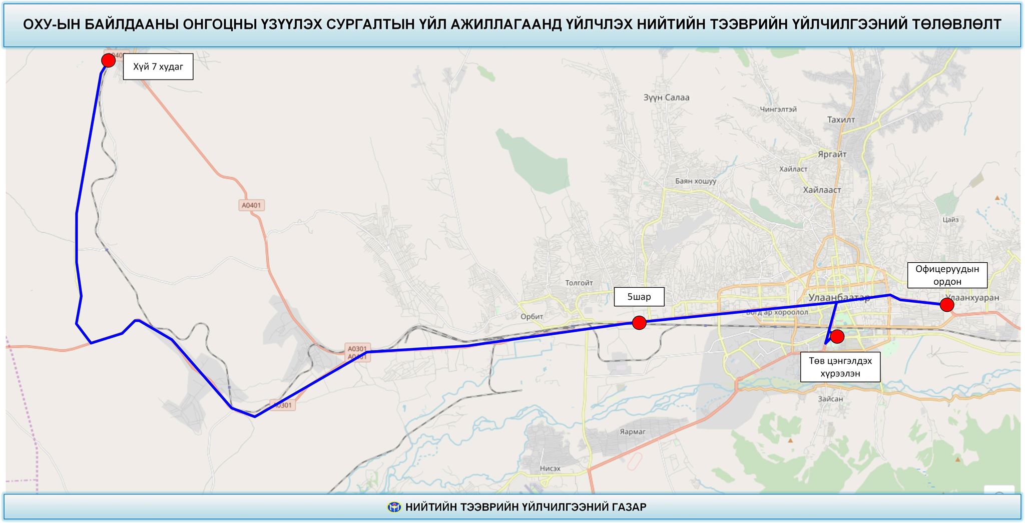 Халх голын 80 жилийн ойн баярын хүрээнд зохион байгуулагдах ОХУ-ын байлдааны онгоцны үзүүлэх тоглолт 2019 оны 08 дугаар сарын 28-ны өдөр болохтой холбогдуулан Төв цэнгэлдэх хүрээлэн, Офицеруудын ордон, Таван шараас их багтаамжийн хоёр автобус 10.20, 10.30 цагуудаас Хүйн долоон худаг руу тус тус үйлчилнэ гэж нийслэлийн Нийтийн тээврийн үйлчилгээний газраас мэдээлэв.