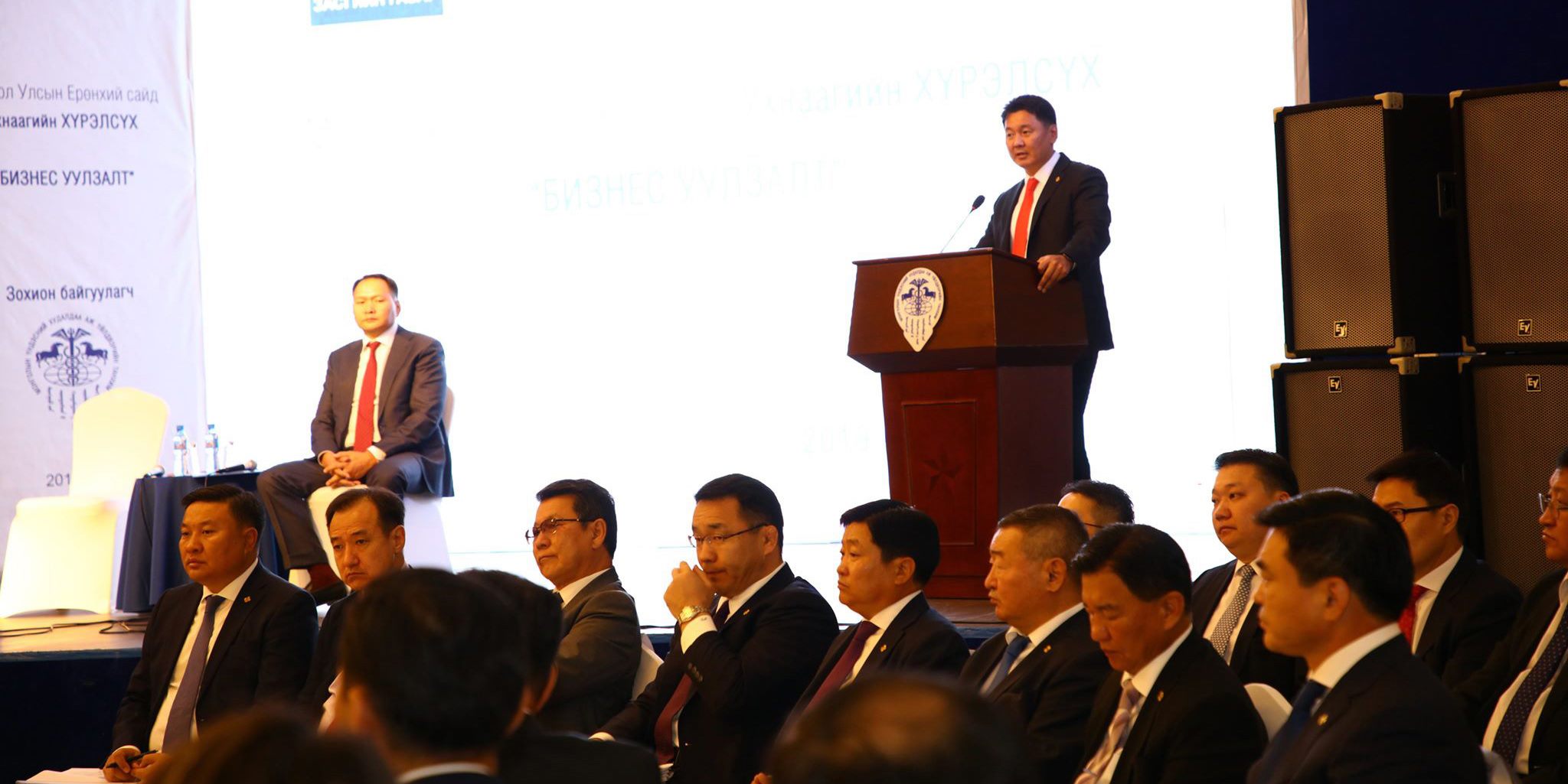 Уулзалтын эхэнд Ерөнхий сайд У.Хүрэлсүх Монгол Улсын нийгэм эдийн засгийн өнөөгийн байдал, бизнес эрхлэгчдийн ажиллах орчин, үйл ажиллагааг дэмжих талаар Засгийн газраас баримталж буй бодлого цаашид авч хэрэгжүүлэх арга хэмжээний талаар товч мэдээлэл өгсөн юм. Тэрбээр “Бизнесийн салбарт үүссэн хүндрэл бэрхшээл, тулгамддаг асуудлаа бид ний нуугүй ил тод ярих нь чухал. Засгийн газар баялаг бүтээгчдээ бүх талаар дэмжинэ. Харин хууль бус үйл ажиллагаа явуулж байгаа аливаа этгээдтэй хатуу хариуцлага тооцно. Тооцсоор байна. Сүүлийн үед уул уурхайн салбарт гаргаж байгаа шийдвэрүүд гэхэд бизнесийн орчинд ургасан хог шарилжаа зулгааж байгаа асуудал болохоос биш зүлгээ устгаж байгаа явдал биш гэдгийг ойлгох хэрэгтэй. Улс төр, бизнесийн хүрээнд сүлжээ үүсгэн хууль бус монофоль эрх тогтоож байгаа асуудалтай хатуу тэмцэж, таслан зогсоохын төлөө ажиллана” хэмээв.