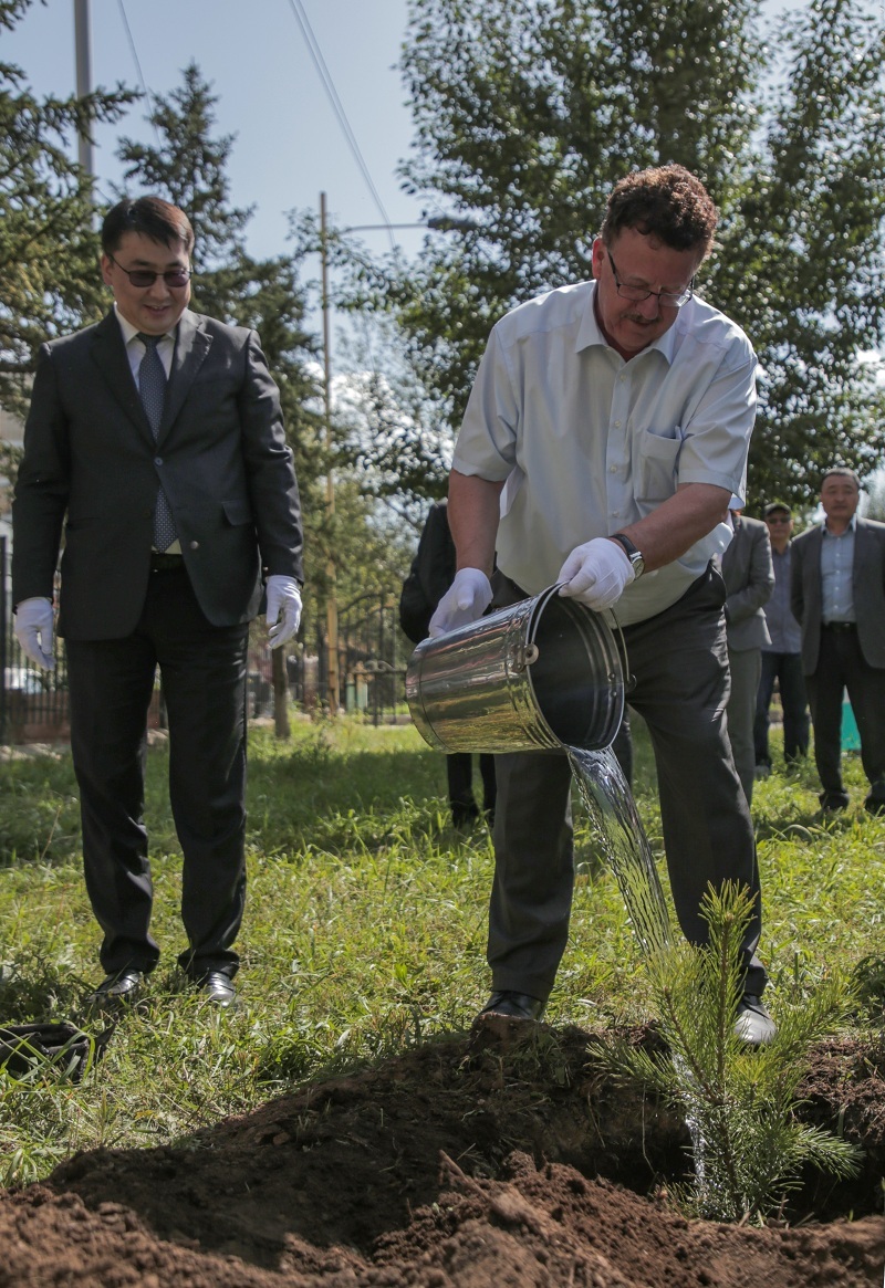 ХБНГУ-ын Хүнс, хөдөө аж ахуйн яамны Парламент дахьТөрийн нарийн бичгийн дарга Ханс-Иоахим Фухтел энэхүү цэцэрлэгт мод суулгаж буй анхны гадаадын зочин юм байна.