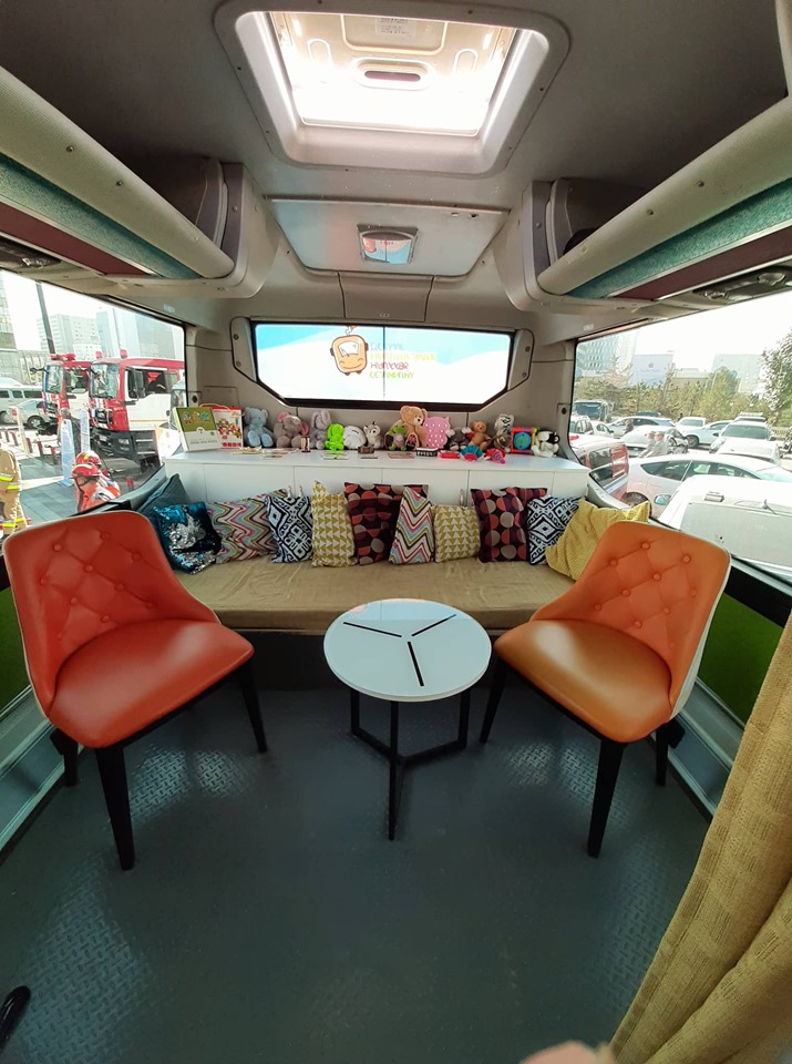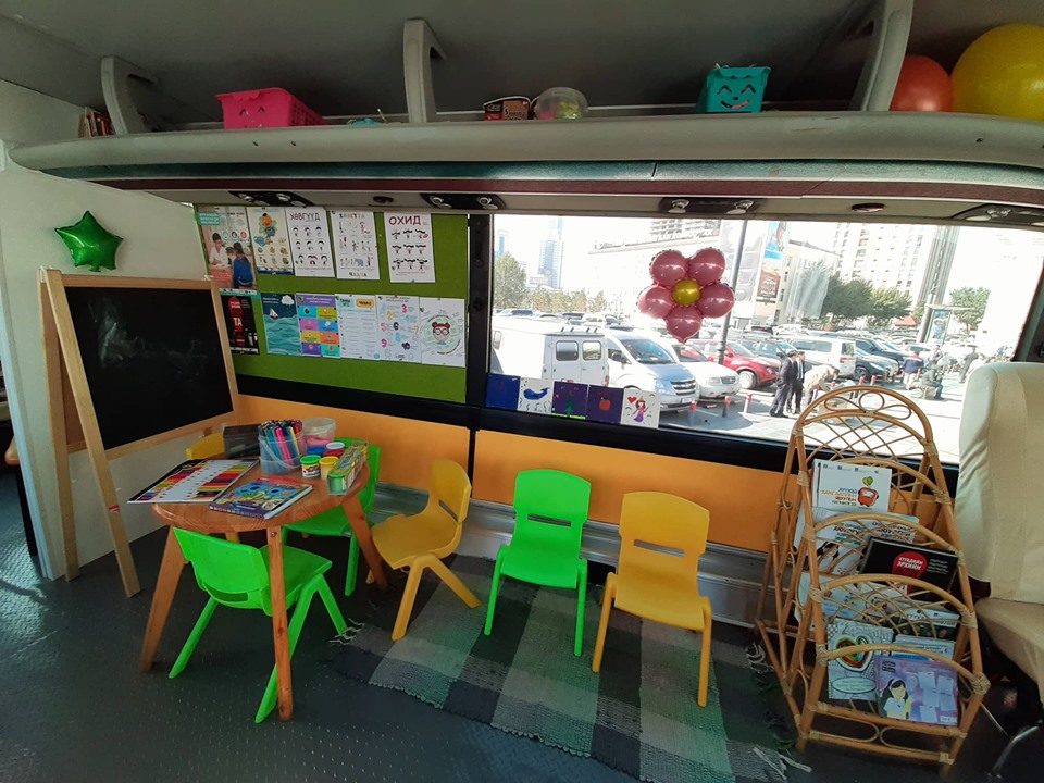 Хүүхэд хамгааллын нэртэй энэхүү автобус хаана очиж зогсоно, тэр газар “хүүхэд хамгааллын цэг” болно. Автобус дотор хүүхэд өсвөр үеийнхэн, эцэг эхчүүд, залуу хосуудад тулгамдсан асуудлаар мэдээлэл өгөх самбар, ном, гарын авлага, сэтгэл зүйн болон хууль эрх зүйн анхан шатны зөвлөгөө өгөх өрөө тасалгаа, хүүхэд хамгааллын зөрчлийг даруй бүртгэж, нэгдсэн системд оруулах эрсдэлийн программ, тоглоомын булан, номын сан гээд олон зүйл бий. Эцэг эхчүүд, хүүхдүүд, гэр бүл, хүүхдийн эрх хамгаалал, нөхөн үржихүйн асуудал, нийгэмд тулгамдаж буй сөрөг үзэгдлүүдийг сайн сайхан замд орох учир шалтгаан, танин мэдэхүйн шинжтэй сургалт, мэдээллүүдийг явуулын үйлчилгээнээс авч болно.