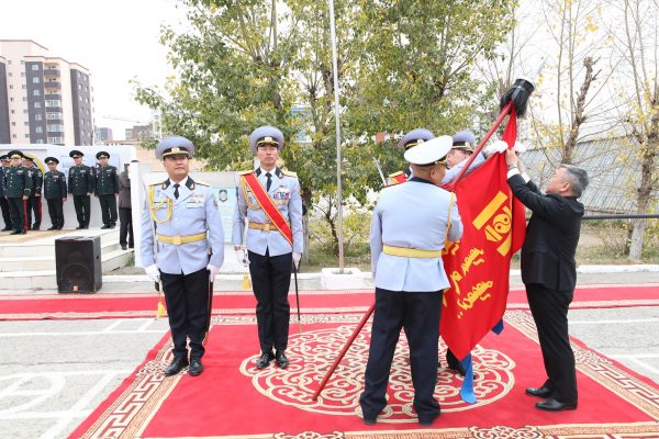 Зарлигийг уншиж сонордуулсны дараа Монгол Улсын Ерөнхийлөгчийн Тамгын газрын дарга З.Энхболд Цэргийн гавьяаны улаан тугийн одонг тус ангийн цэргийн Байлдааны туганд зүүж, баяр хүргэн үг хэллээ.