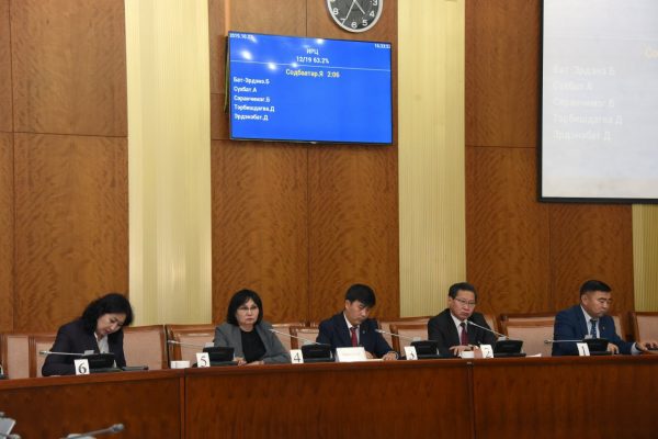 Улсын Их Хурлын Байгаль орчин, хүнс, хөдөө аж ахуйн байнгын хорооны өчигдрийн (2019.10.23) хуралдаанаар гурван асуудал хэлэлцсэн бөгөөд хуралдааныг Улсын Их Хурлын гишүүн Б.Батзориг даргалав.