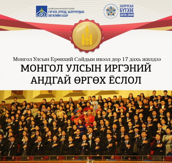 Монголын Залуучуудын Холбоо 2017-2044 оныг бүтээн байгуулалтын он болгон зарлаж “Залуусаа бүтээе” уриан дор бүхий л үйл ажиллагаагаа зохион байгуулж байна. Бүтээлч залуу үеийнхэнд эх оронч сэтгэлгээг төлөвшүүлэн, төр улсаа эрхэмлэн дээдлэх, эх орон ард түмнийхээ өмнө хүлээх хариуцлагаа ухамсарлан чин шударгаар амьдрах, түүх соёлоороо бахархах үзлийг төлөвшүүлэх зорилгоор “Иргэний андгай өргөх ёслол”-ыг 17 дахь жилдээ Монгол Улсын Засгийн газар, Засгийн газрын хэрэгжүүлэгч агентлаг Гэр бүл, Хүүхэд залуучуудын хөгжлийн газар, Улсын бүртгэлийн ерөнхий газар, Засгийн газрын хэрэг эрхлэх газар, Боловсрол, соёл, шинжлэх ухаан, спортын яам, Хөдөлмөр, нийгмийн хамгааллын яам, Улсын бүртгэлийн ерөнхий газар, Нийслэлийн улсын бүртгэлийн газар, Нийслэлийн боловсролын газар, 21 аймгийн Засаг даргын тамгын газар, 21 аймгийн Залуучуудын холбоо, 9 дүүргийн Залуучуудын холбоо, Монголын Сурагчдын Холбоо, ЕБС, МСҮТ-ийн захиргаа, Залуучуудын зөвлөлтэй хамтран зохион байгуулах гэж байна.