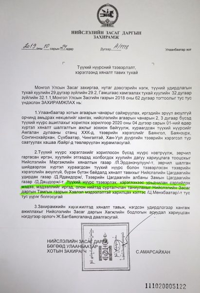 Нийслэлийн Засаг дарга бөгөөд Улаанбаатар хотын Захирагч С.Амарсайхан өчигдөр Түүхий нүүрсний тээвэрлэлт, хэрэглээнд хяналт тавих тухай захирамж гаргалаа.