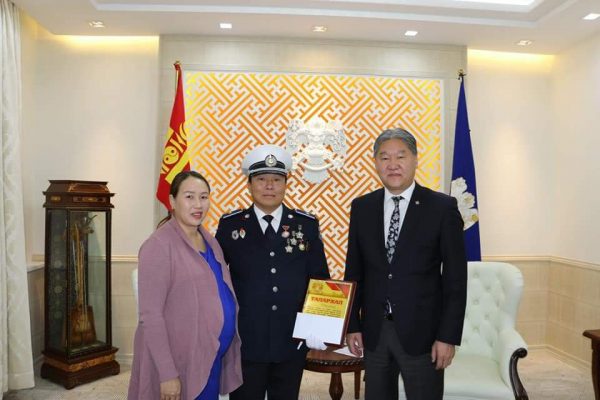 НИТХ-ын дарга Иргэний зориг, авхаалж самбаа гарган, нийслэлийн бяцхан иргэний амь насыг авран хамгаалсан баатарлаг үйлсэд нь талархал илэрхийлэн мэхийн ёсолж, хүндэтгэл үзүүлсэн ба “Цагдаагийн хүн хэзээ ч, хаана ч үүргээ ингэж гүйцэтгэж чадаж буйд талархаад, үлгэр жишээ эцэг хүн” хэмээн урамшуулсан юм.