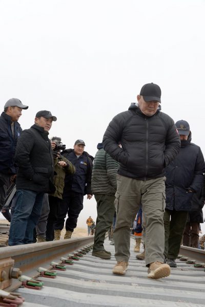 Монгол Улсын Ерөнхийлөгч Х.Баттулга энэ сарын 22-23-ны өдрүүдэд Өмнөговь аймгийн Цогтцэций /Тавантолгой/ сумаас Дорноговь аймгийн Зүүнбаян хүртэл баригдаж буй 414.6 км төмөр замын трассын дагуу ажлын явцтай танилцлаа.