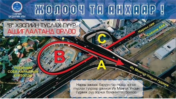 Иймд, иргэд жолооч та бүхэн Нарны замаас зүүнээс баруун гар тийш зорчихдоо баруун гар тийш эргэн зургийн дагуу хөдөлгөөнд оролцож, Их монгол улсын гудамж руу орох боломжтой болсон тул тухайн замыг сонгон хөдөлгөөнд оролцохыг зөвлөж байна.