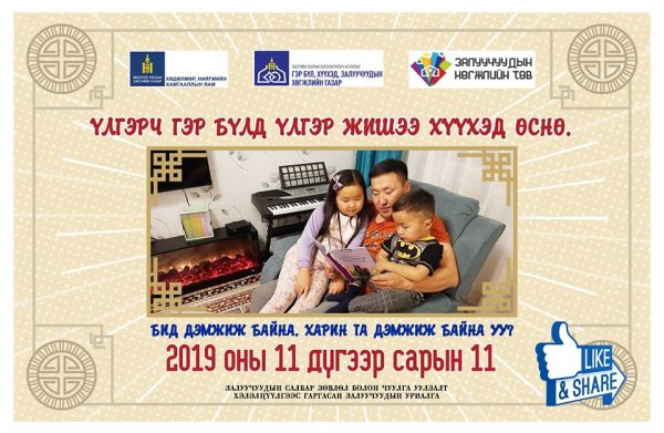 Засгийн газрын хэрэгжүүлэгч агентлаг Гэр бүл, хүүхэд, залуучуудын хөгжлийн газар болон Нийслэлийн Гэр бүл хүүхэд залуучуудын хөгжлийн газраас залуу гэр бүлүүдийг зохистой цахим хэрэглээтэй болгох, хүүхдээ зөв хүмүүжүүлэх орчинг бүрдүүлэхэд дэмжлэг үзүүлэх зорилгоор 894.496 өрхүүд үдэш бүр хүүхдүүддээ үлгэр ярьж өгөхийг уриалж, 2019 оны арваннэгдүгээр сарын 11-ний өдрийг “ҮЛГЭРЧ ЭЭЖ, ААВУУДЫН ӨДӨР” болгох уриалга гаргаж байна.
