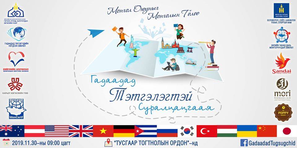 “Гадаадад тэтгэлэгтэй суралцацгаая” боловсролын нээлттэй үйл ажиллагааг энэ сарын 30-ны өдрийн 09:00-18:00 цагт Тусгаар тогтнолын ордонд болох аж. “Гадаадад төгсөгчдийн нэгдсэн зөвлөл” НҮТББ-аас санаачлан Нийслэлийн Гэр бүл, хүүхэд, залуучуудын хөгжлийн газар, “Хилийн чанад дахь Монголчуудын холбоо” ТББ-тай хамтран тус өдөрлөгийг хоёр дахь удаагаа зохион байгуулах аж. Тус үйл ажиллагаа нь гадаадад болон эх орондоо тэтгэлэгтэй суралцах, гадаад оронд суралцаж байгаа болон суралцаж төгссөн салбар бүртээ манлайлагч залуучууд өөрсдийн мэдлэг чадвар, туршлагаасаа хуваалцан, орон орны боловсролын тогтолцоо, тус улсад суралцахад анхаарах зүйлс, хоёр улсын харилцаа гэх мэт олон талын зөвлөгөө, мэдээллийг өгдгөөрөө онцлог. Мөн үйл ажиллагааны үеэр мэргэжлээ хэрхэн зөв сонгох, карьер төлөвлөлтийг хэрхэн хийх зөвлөгөө, мэдээллийг өгөх юм.