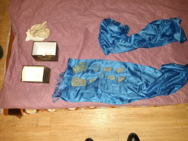 Хойшлуулшгүй ажиллагааны хүрээнд гэрт нь үзлэг хийж эд мөрийн баримтаар эртний хадны сүг зураг мэт хэлбэр дүрстэй 11 ширхэг металл эд зүйлсийг хураан авсан. Хураагдсан эд зүйлийг Шинжлэх ухааны академи, Археологийн хүрээлэн шинжээч томилж шинжилгээ хийлгэхэд: Хүннүгийн соёлд хамаарах НТӨ III-I зуунд хүрэлээр бүтээгдсэн нэг бүсний чимэглэлийн товруу ба арал болохыг тогтоогдсон. Эдгээр зүйлсийн үнэлгээг тоон утгаар илэрхийлэх боломжгүй, соёлын хосгүй үнэт зүйлсийн ангилалд багтах эд зүйл болох нь тогтоогдсон холбогдох шалгалтын ажиллагааг үргэлжлүүлэн хийж байна.