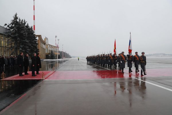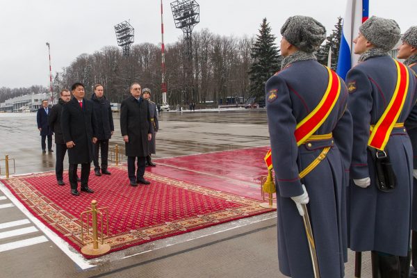 Монгол Улсын Ерөнхий сайд У.Хүрэлсүхийг “Внуково” олон улсын нисэх буудалд Оросын талаас Гадаад хэргийн орлогч сайд И.В.Моргулов тэргүүтэй төлөөлөгчид, Монголын талаас Монгол Улсаас ОХУ-д суугаа Элчин сайд Д.Даваа тэргүүтэй төлөөлөгчид угтан авч Москва хотын хүндэт харуулын гарнизон жагсаж хүндэтгэл үзүүлэв.