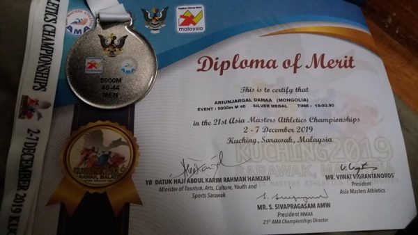 Малайз улсын Саварак хотноо зохион байгуулагдаж байгаа гүйлтийн мастеруудын Ази тивийн аварга шалгаруулах тэмцээний 5000 м зайд Говьсүмбэр аймгийн Онцгой байдлын газрын ахмад ажилтан, бэлтгэл ахлах ахлагч, ОУХМ Д.Ариунжаргал амжилттай оролцож, мөнгөн медаль хүртлээ.