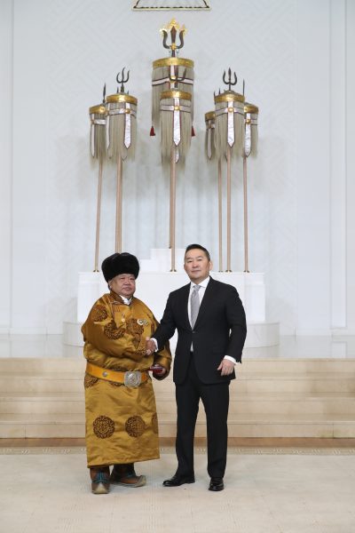 Монгол Улсад хүмүүнлэг иргэний Ардчилсан нийгэм цогцлоон байгуулах, хадгалах, хамгаалах үйлсэд хувь нэмрээ оруулсан аж үйлдвэр, эрүүл мэнд, боловсрол, соёл урлаг, нийгэм, үйлчилгээний салбарын нэр бүхий хүмүүст өнөөдөр Төрийн ордны Ёслол хүндэтгэлийн Их танхимд Монгол Улсын гавьяат цол хүртээв.