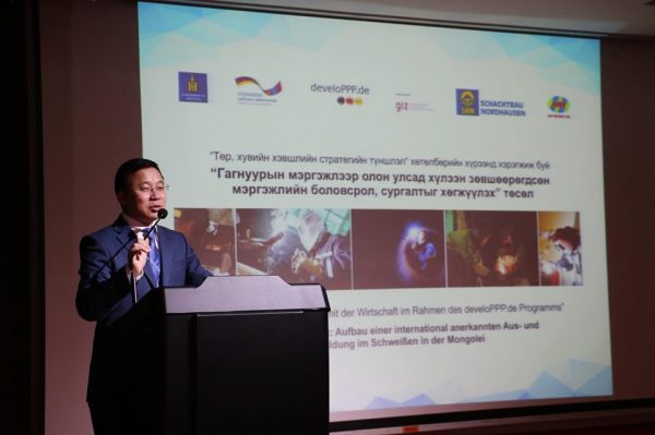 ХБНГУ-ын Холбооны Эдийн засгийн хамтын ажиллагаа, хөгжлийн яамны төр, хувийн хэвшлийн түншлэлийг дэмжих developpp.de хөтөлбөрийн хүрээнд Монгол Улсын Хөдөлмөр, нийгмийн хамгааллын яам, “Хасу Мегаватт” ХХК болон ХБНГУ-ын Шахтбау Нордхаусэн ХХК, Германы Олон улсын хамтын ажиллагааны нийгэмлэг (GIZ) хамтран хэрэгжүүлэх “Төр, хувийн хэвшил стратегийн түншлэл гагнуурын мэргэжлээр олон улсад хүлээн зөвшөөрөгдсөн мэргэжлийн боловсрол, сургалтыг хөгжүүлэх” төслийн нээлтэд ХНХЯ-ны Төрийн нарийн бичгийн дарга Г.Өнөрбаяр, ХБНГУ-аас Монгол Улсад суугаа Онц бөгөөд Бүрэн эрхэт Элчин сайд Ёорн Розенберг, Түншлэлд суурилсан техникийн болон мэргэжлйин боловсрол, сургалт” төслийн удирдагч Беате Диппмар, “Хасу Мегаватт” ХХК-ийн ерөнхий захирал, Аж үйлдвэрийн гавьяат ажилтан Ж.Түмэн-Аюуш нарын төр болон хувийн хэвшил, хамтран ажиллагч олон улсын донор байгууллагын төлөөлөл оролцлоо.