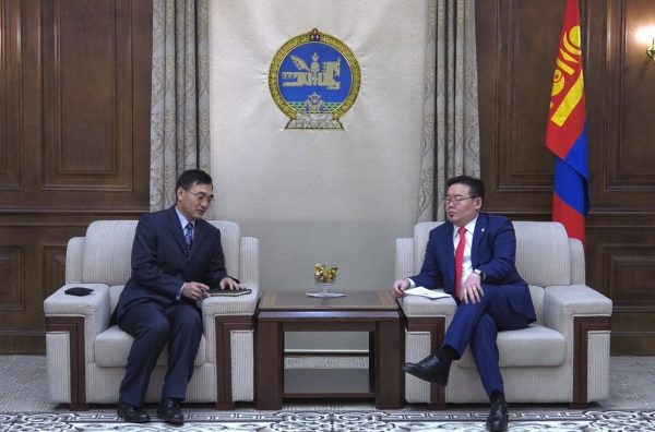Ноён Элчин сайд, цаг гарган хүлээн авч уулзаж буй Улсын Их Хурлын даргад талархал илэрхийлээд Бүгд Найрамдах Хятад Ард Улсын Бүх Хятадын Ардын Төлөөлөгчдийн Их Хурлын Байнгын Хорооны дарга Ли Жаньшугийн мэндчилгээг уламжиллаа. Сүүлийн жилүүдэд БНХАУ Монгол Улсын сайн хөршийн харилцаа, хамтын ажиллагаа тасралтгүй, амжилттай хөгжиж ирснийг тэрбээр тэмдэглээд БНХАУ үүнд ихээхэн сэтгэл хангалуун байгааг дуулгав.