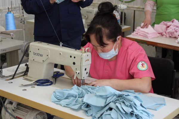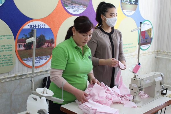 “Болзошгүй эрсдлээс урьдчилан сэргийлэх зорилгоор халдварын эрсдэлтэй бүсэд ажилладаг эмч, эмнэлгийн мэргэжилтнүүддээ амны хаалтаар хангахаар Эрүүл мэндийн төвийн ажилтнууд өөрсдөө ажлын бус цагаар амны хаалтаа оёж байна. Оёсон амны хаалтыг бүтэн өдрийн туршид зүүж хэрэглэх боломжгүй учраас үдээс өмнө цагаан, үдээс хойш цэнхэр, ногоон гэх мэтээр өнгөөр ялгаж нэг өдрийн туршид 3 удаа амны хаалтаа сольж хэрэглэх байдлаар бэлтгэж байна” хэмээн Эрүүл мэндийн төвийн дарга Л.Байгал танилцууллаа.