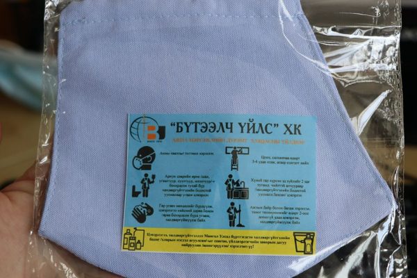 Тиймээс Налайх дүүргийн Онцгой комиссоос Налайх дүүрэгт оёдлын чиглэлээр үйл ажиллагаа явуулдаг “Бүтээлч үйлс” ХК-д амны хаалт үйлдвэрлэх чиглэлээр хүсэлт гаргасан. Тус хүсэлтийг дэмжин, нийгмийн хариуцлагаа хэрэгжүүлж, “Бүтээлч үйлс” ХК-аас цэвэр хөвөн даавуун амны хаалтыг 5000 ширхэгийг үйлдвэрлэн Налайх дүүрэгт албан ёсоор хүлээлгэн өглөө.