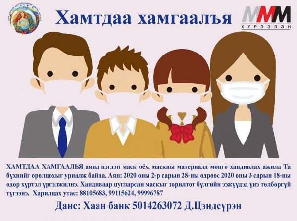 Энэхүү аянд нэгдэн маск оёх, маск болон маскны материалд мөнгө хандивлах ажилд иргэн бүрийг оролцохыг уриалж байна.