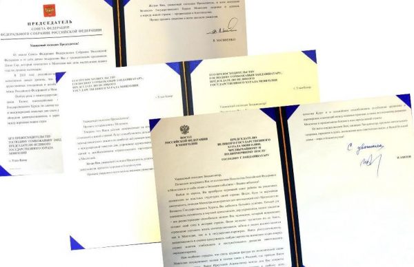 Холбооны зөвлөлийн дарга В.И.Матвиенко, Төрийн Думын дарга В.В.Володин нарын баярын мэндчилгээнд манай хоёр орны харилцааг бүхий л салбарт өргөжүүлэн хөгжүүлэх чиглэлээрх Таны хүчин чармайлт Орос, Монголын хооронд иж бүрэн стратегийн түншлэл, сайн хөршийн найрамдалт хэлхээ холбоогоо бэхжүүлэх, хоёр талын болон олон улсын харилцааны амин чухал асуудлаар парламент хоорондын яриа хэлэлцээг цаашид бататган бэхжүүлэхэд чухал хувь нэмэр оруулна гэдэгт итгэлтэй байна.