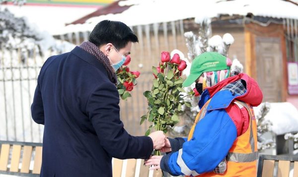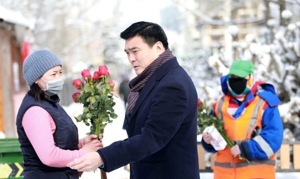 Олон улсын эмэгтэйчүүдийн эрхийг хамгаалах өдрийг тохиолдуулан өчигдөр /2020.03.08 / нийслэлийн Засаг дарга бөгөөд Улаанбаатар хотын захирагч С.Амарсайхан нийслэл хотоо цэвэр цэмцгэр байлгахын төлөө цаг нарыг үл хайрхан ажилладаг үйлчилгээний ажилтан эмэгтэйчүүдийн төлөөлөлд Хотын даргын хувиар мэндчилгээ дэвшүүлж, сарнай цэцэг бэлэглэжээ.